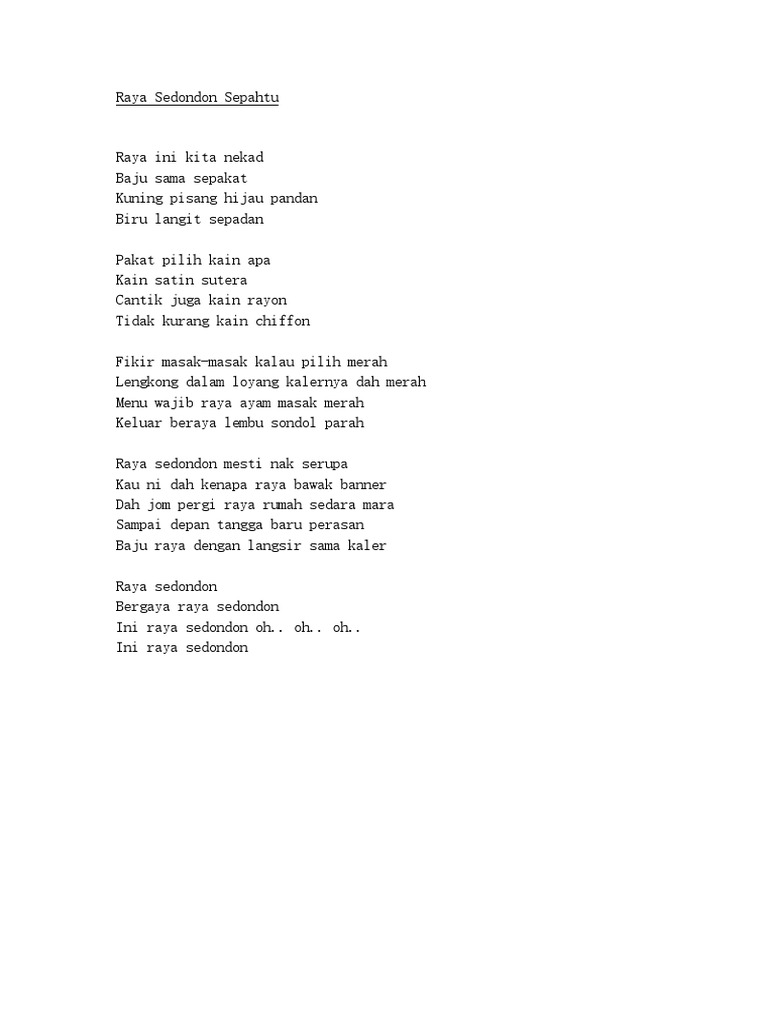 Lagu raya sedondon. BAJU RAYA SEDONDON IBU DAN ANAK 2019. LIRIK LAGU DOAKU RAMADHAN JANGAN PERGI LUFYA.